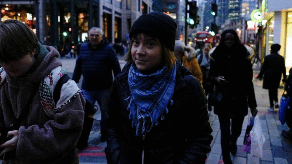 LONDON: Aktivis Sweden Greta Thunberg, ditahan di London ketika menyokong tindakan tahanan yang mogok lapar dan dikaitkan dengan Kumpulan Palestine Action.