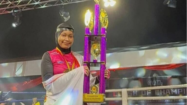 Atlet Sukan Malaysia (Sukma) Johor, Sofea Aressa Mohamad Hairul, membuktikan kehebatannya apabila menewaskan atlet China, Victoria Blicze di kejohanan Cabaran Muay Thai Antarabangsa Negeri Sembilan 2025 di Sendayan, baru-baru ini.