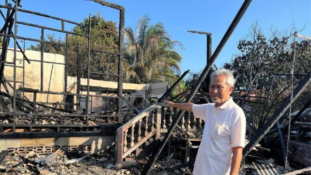 “Saya sedang bersiap mengambil wuduk di dapur sebelum tiba-tiba terdengar bunyi kotak fius meletup dan melihat api menyambar dinding rumah.