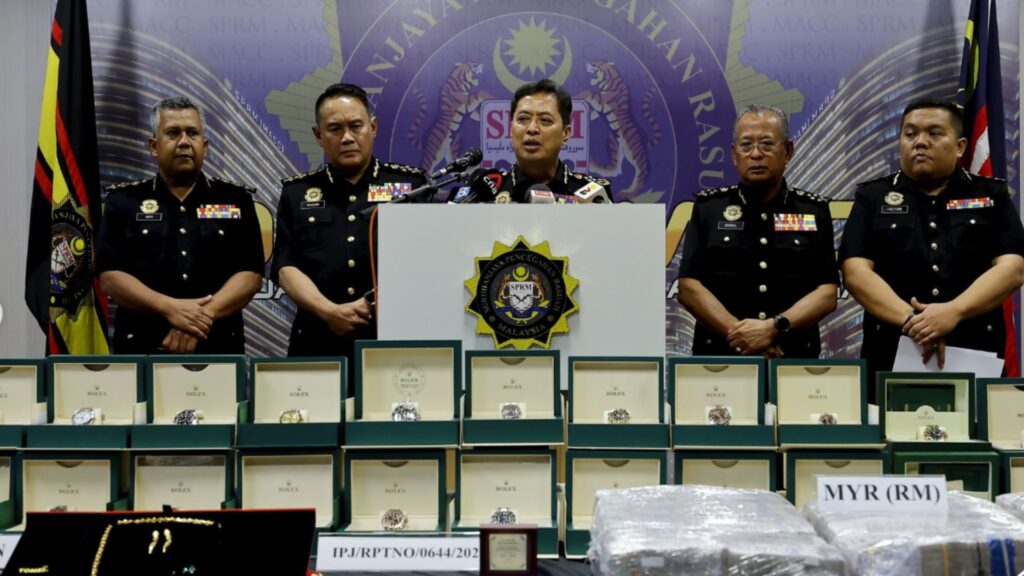 “SPRM turut menyita wang tunai berjumlah RM4.4 juta, mata wang asing bernilai RM1.4 juta, satu unit kereta Range Rover SVR bernilai RM360,000 dan 26 unit jam bernilai RM2.3 juta.