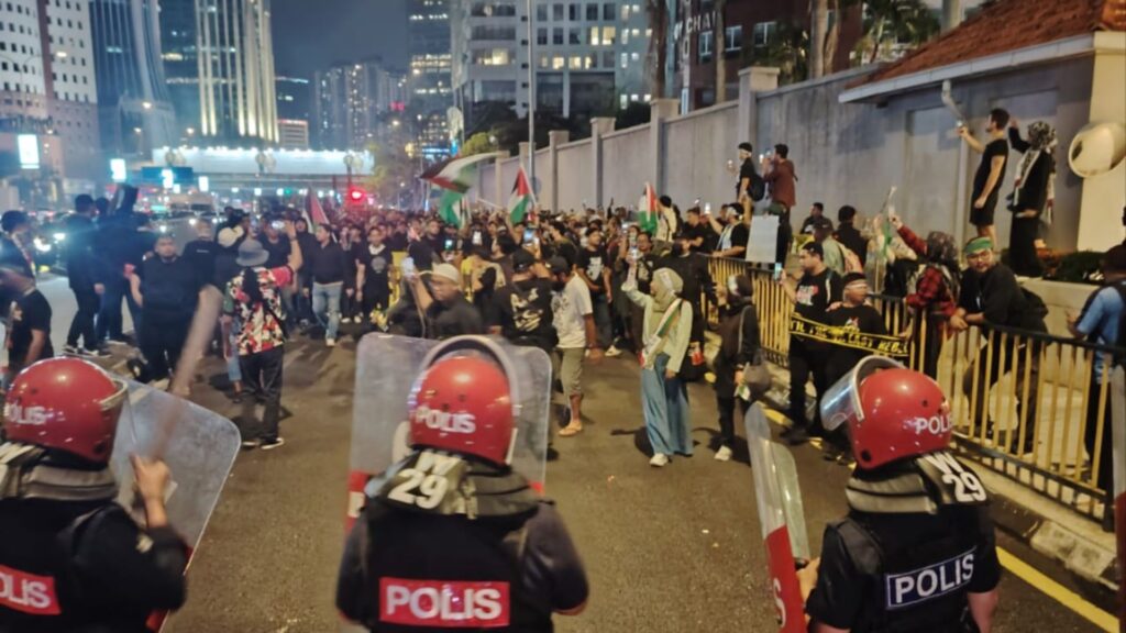 KUALA LUMPUR: Api kemarahan rakyat Malaysia susulan pintasan Israel terhadap kapal-kapal Global Sumud Flotilla membara dalam perhimpunan di kedutaan Amerika Syarikat di ibu negara.