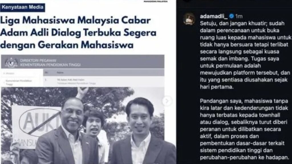 KUALA LUMPUR: Cabaran yang dilontarkan oleh Liga Mahasiswa Malaysia (LMM) untuk berdialog secara terbuka disahut oleh Timbalan Menteri Pengajian Tinggi, Adam Adli Abdul Halim